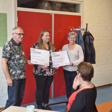 verrassing cheques van de rabo-clubkas uitreiken. Met dit bedrag kunnen we weer leuke activiteiten voor onze leden